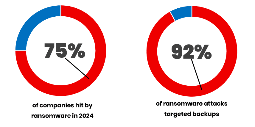 The statistics are staggering. 2024 was an active year for ransomware and 2025+ has become the age of AI-powered ransomware. Additionally, company backups are a well-known and prime target for bad actors. The speed at which a company can back up their data is no longer a prime metric, rather all that matters is how quickly you can recover if something happens. And something will.. In this era, it is not a matter of "if," but "when" an attack occurs. If these statistics keep you up at night, let us show you how to add the only panacea to Ai-powered ransomware. Protection is no longer an optional expense, it is an absolute necessity for business survival today.